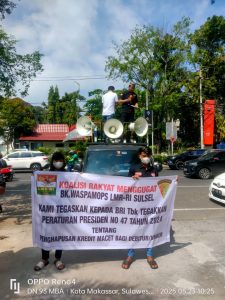 Koordinator aksi, Jumardin,S.H.,M.H.,C.L.E.,C.FLS, menyampaikan bahwa tindakan sepihak dalam proses lelang agunan tanpa memberikan solusi atau ruang musyawarah kepada nasabah adalah bentuk pelanggaran prinsip keadilan dalam pelayanan publik.