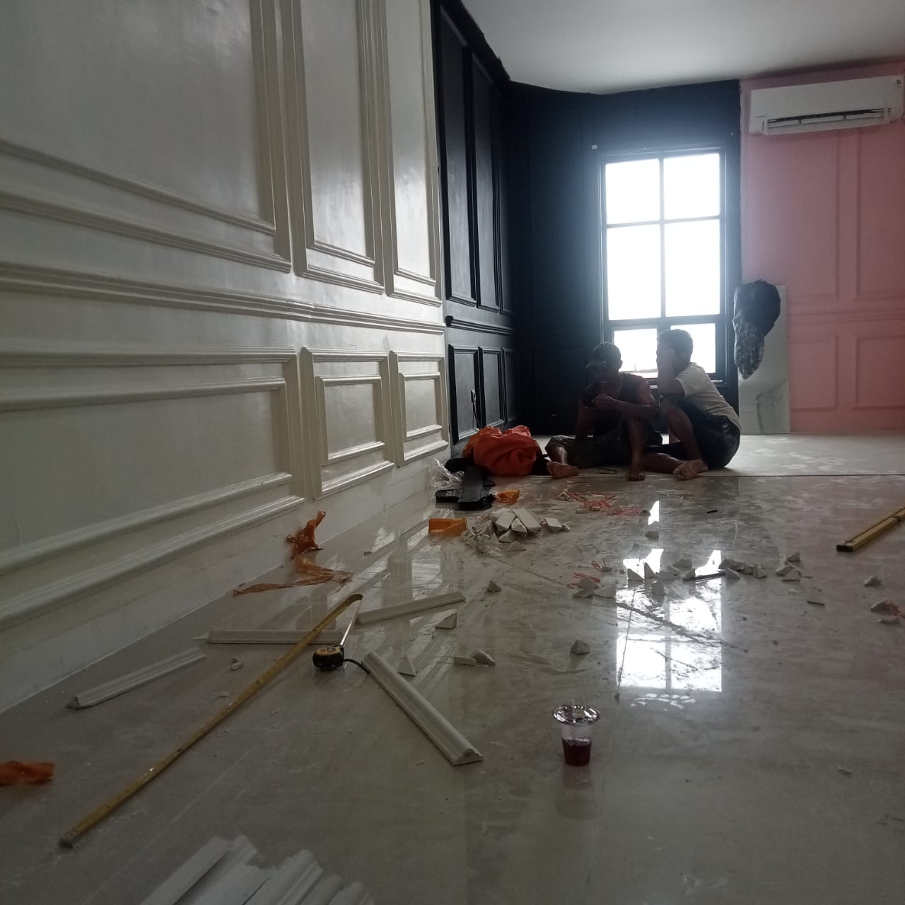 Tambahnya, Jasa pemasangan Wall Moulding Itu diluar yah dari jasa plamor dan cat dindingnya”.