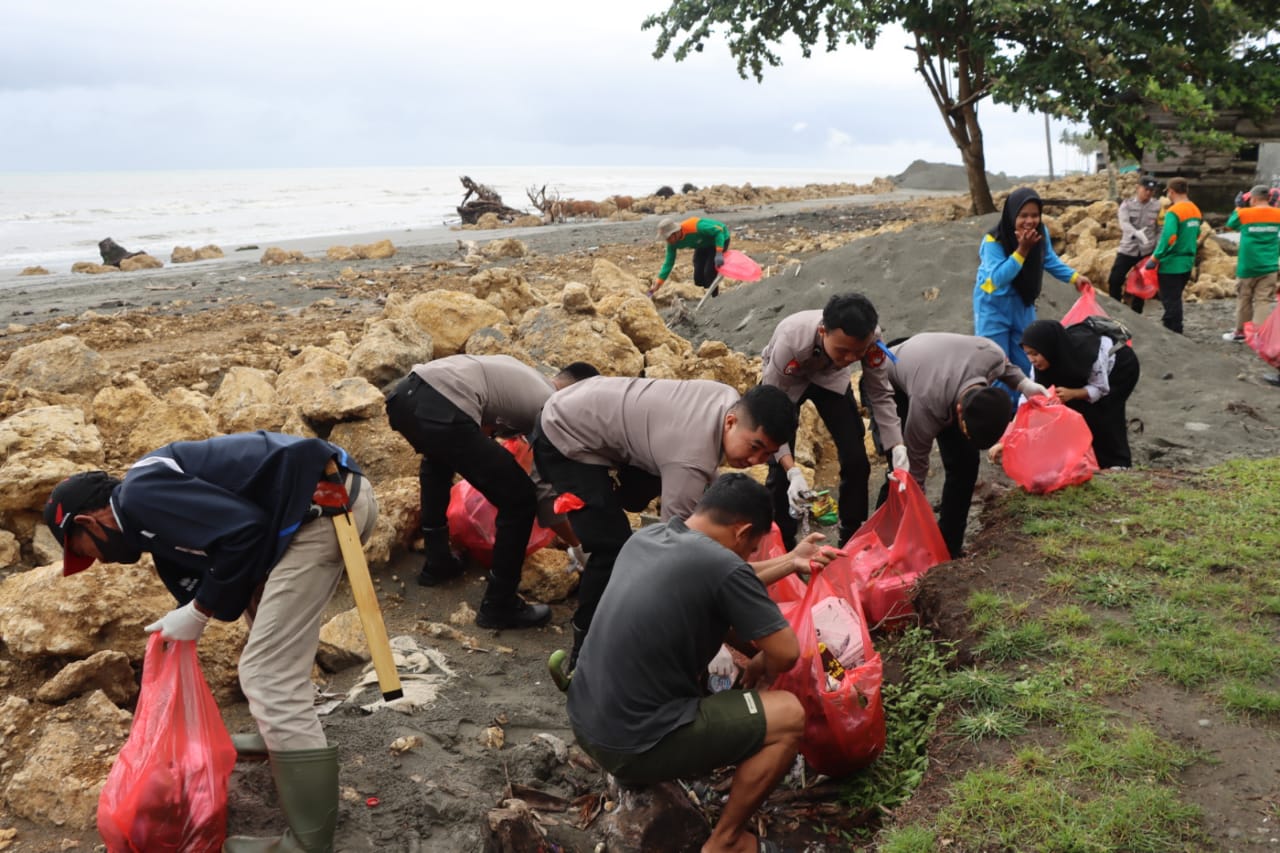 Jaga Pesisir Pantai, Personel Polres Pasangkayu Peduli Lingkungan Bersama Warga dan Stakeholder