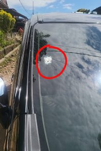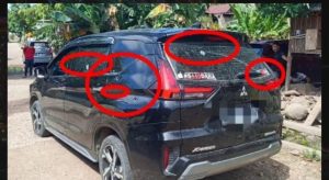 Sebuah mobil Mitsubishi Expander (nomor polisi dirahasiakan, red) yang dikendarai dua warga menjadi sasaran tembakan. Sedikitnya delapan butir peluru bersarang di bodi kendaraan yang merupakan unit milik PT. Muda Jaya Perkasa, usaha rental kendaraan milik Hasdar, warga Kelurahan Tanru Tedong, Kecamatan Dua Pitue, Sidrap.
