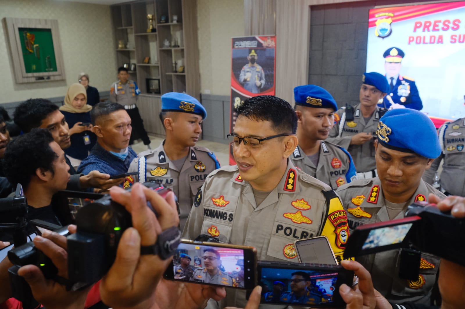 INTELIJENNEWS.COM – Kabidhumas Polda Sulsel Kombes Pol Komang Suartana bersama Kabid Propam Polda Sulsel Kombes Pol Zulham Effendy menggelar Konferensi Pers terkait berita di salah satu media online yang menyatakan bahwa salah satu oknum anggota Polda Sulsel Bripda FN melakukan pemerkosaan berkali-kali terhadap seorang wanita di Makassar.