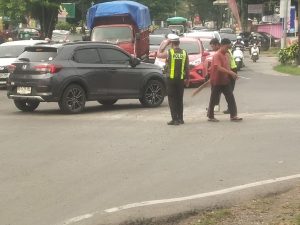 Personel Lantas Polsek Biringkanaya yang tiba di lokasi langsung berkoordinasi dengan warga sekitar untuk melakukan pembersihan secara bersama-sama. Dengan menggunakan peralatan seadanya, material yang mengotori badan jalan berhasil disingkirkan sehingga arus lalu lintas kembali aman dan lancar.