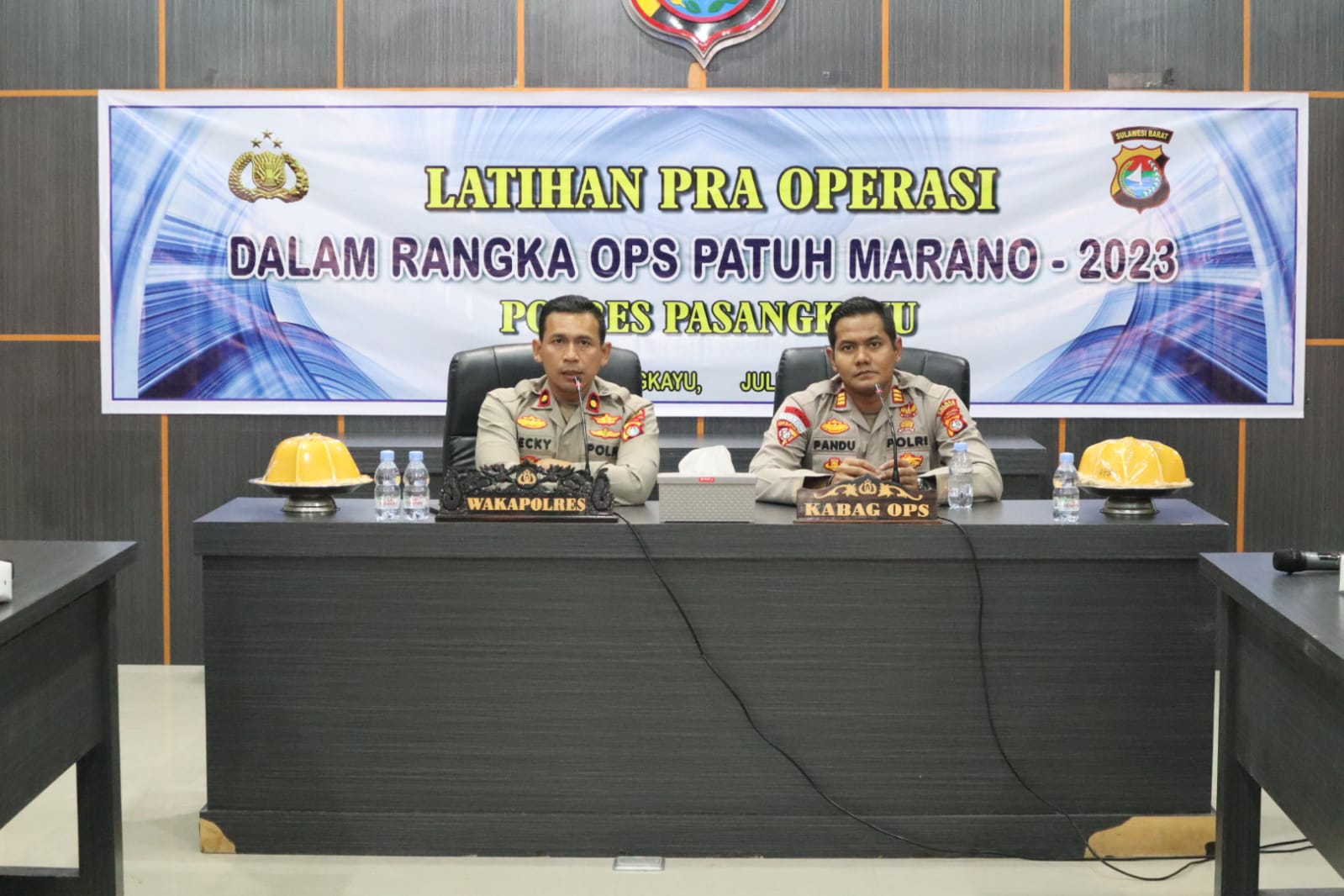 Intelijennews.com PASANGKAYU – Wakapolres Pasangkayu Kompol Recky Wijaya S.H S.I.K membuka langsung kegiatan Latihan Pra Operasi Patuh Marano – 2023 Polres Pasangkayu yang berlangsung di Aula Rupatama Polres Pasangkayu, Jumat (07/07/2023).