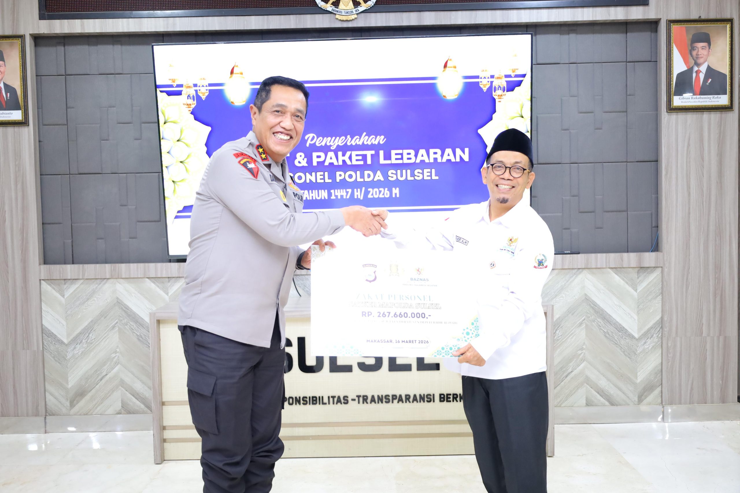 Kegiatan penyerahan zakat fitrah dan paket Lebaran tersebut berlangsung di Lobby Lontang Adduppangeng Lt.1 Mapolda Sulsel. Secara simbolis, zakat fitrah diserahkan langsung oleh Kapolda Sulawesi Selatan Irjen Pol. Djuhandhani Rahardjo Puro, S.H., M.H., kepada Ketua BAZNAS Provinsi Sulawesi Selatan Dr. dr. H. Muhammad Khidri Alwi, M.Kes., M.A. Turut hadir dalam kegiatan tersebut Wakapolda Sulsel Brigjen Pol. Nasri, S.I.K., M.H., serta para Pejabat Utama Polda Sulsel.